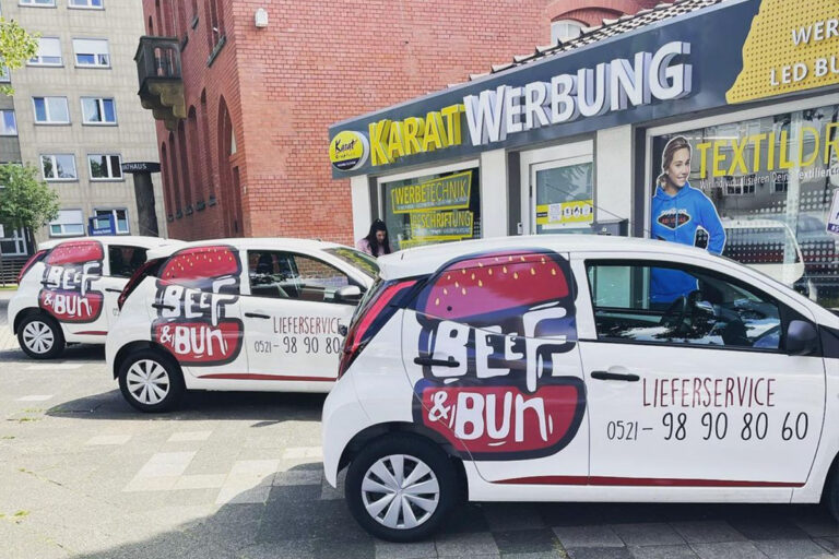 Setzen Sie auf die Expertise von Karat-Werbung und lassen Sie Ihre Fahrzeuge zum Blickfang werden. Wir bieten Ihnen individuelle Lösungen, die Ihre Marke sichtbar machen und im Straßenverkehr positiv hervorstechen.